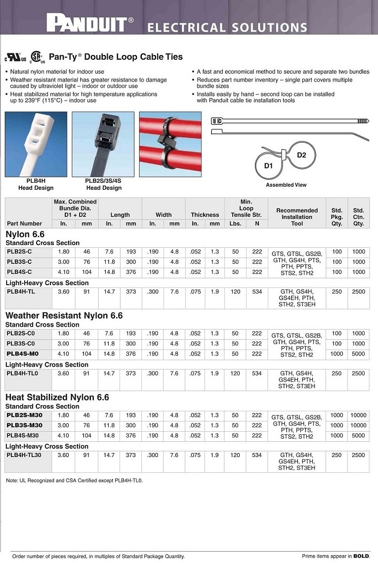 泛達(PANDUIT) 尼龍6.6 雙環(huán)路線纜扎帶 PLB2S-M0, PLB3S-M0, PLB4S-M0, PLB4H-TL0