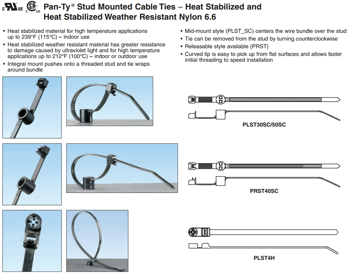 PANDUIT(泛達(dá))帶安裝螺柱線纜扎帶 PLST30SC-D30,PLST50SC-D30 產(chǎn)品特點(diǎn):