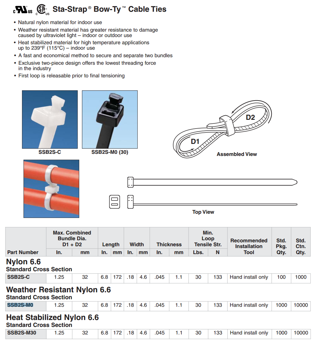 PANDUIT泛達(dá) Sta-Strap Bow-Ty系列 雙環(huán)路線纜扎帶 SSB2S-M/C, SSB2S-M0, SSB2S-M30