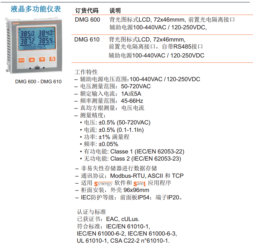 | DMG610多功能電力儀表 |