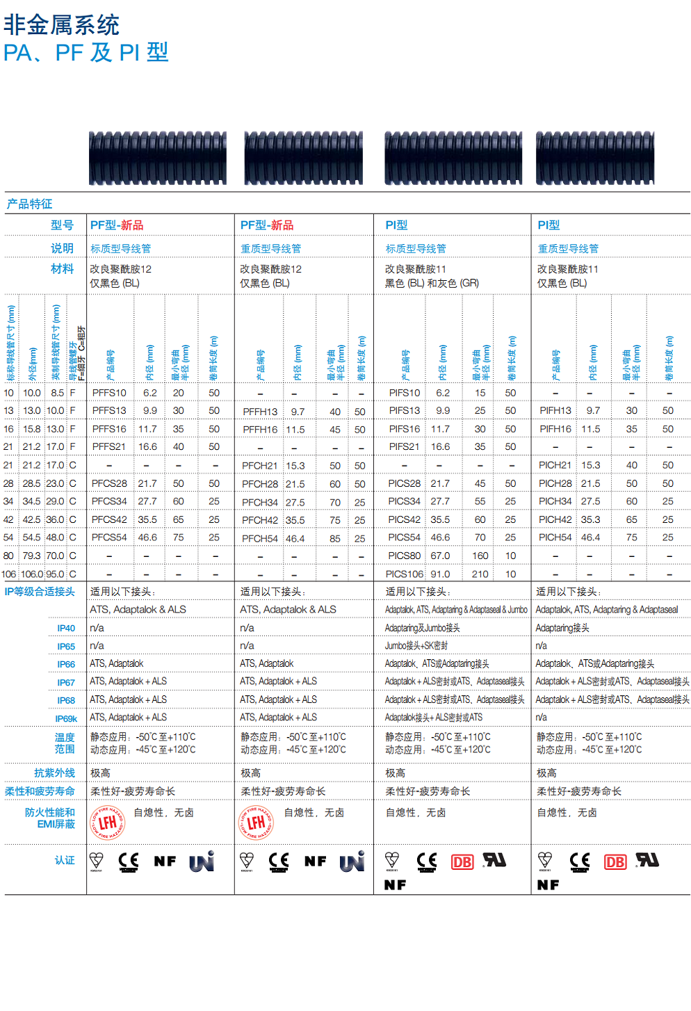 - 非金屬系統(tǒng) 柔性導(dǎo)線管- PF和PI型