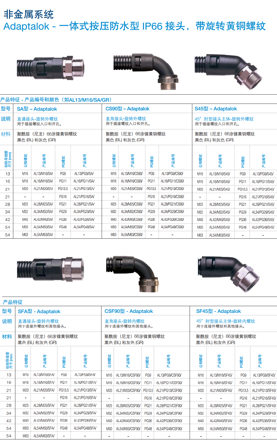 - 一體式按壓IP66接頭-45型和按入型-- 帶旋轉(zhuǎn)黃銅螺紋