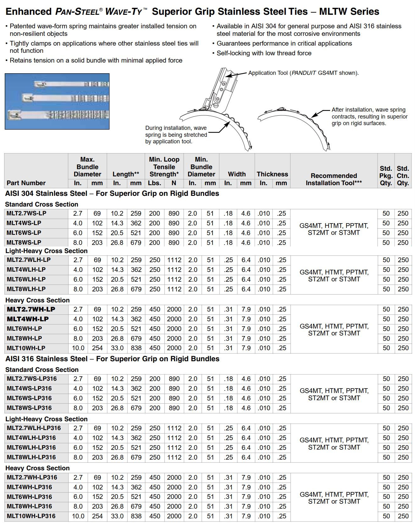 - PAN-STEEL 彈簧式抓握不銹鋼線纜扎帶-MLTW系列 WAVE-TY™增強(qiáng)型高級抓握不銹鋼扎帶