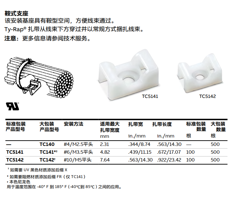 ABB通貝 馬鞍式扎帶固定支座 線夾 原色尼龍:TC140, TC141, TC142, TC5141, TC5142;