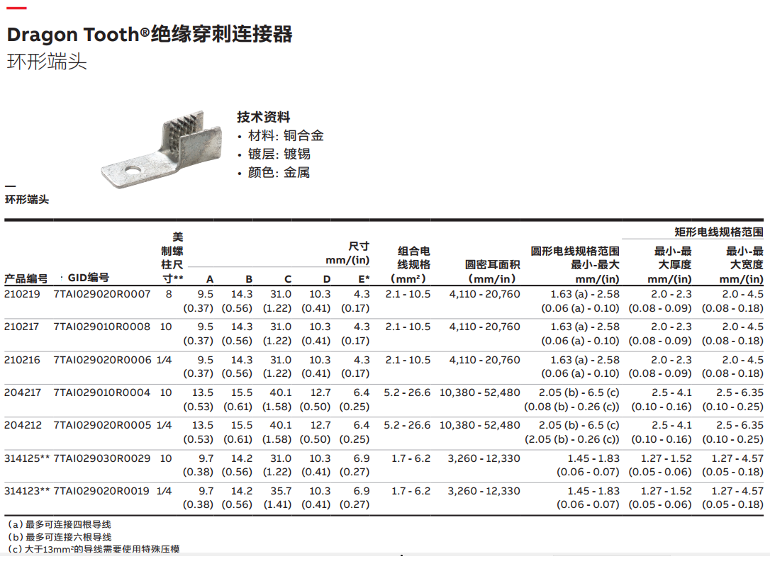 ABB通貝 Dragon Tooth 絕緣穿刺連接器-環(huán)形端頭